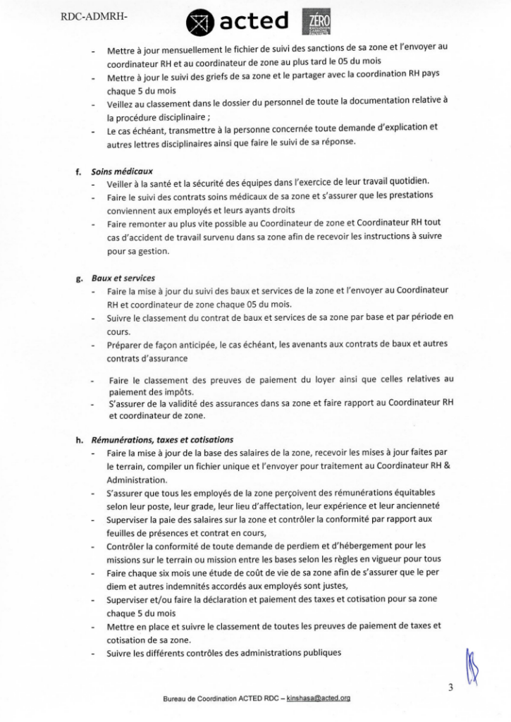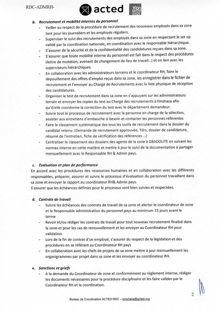 | Intitulé du poste | Chargé de liaison RH sénior zone |