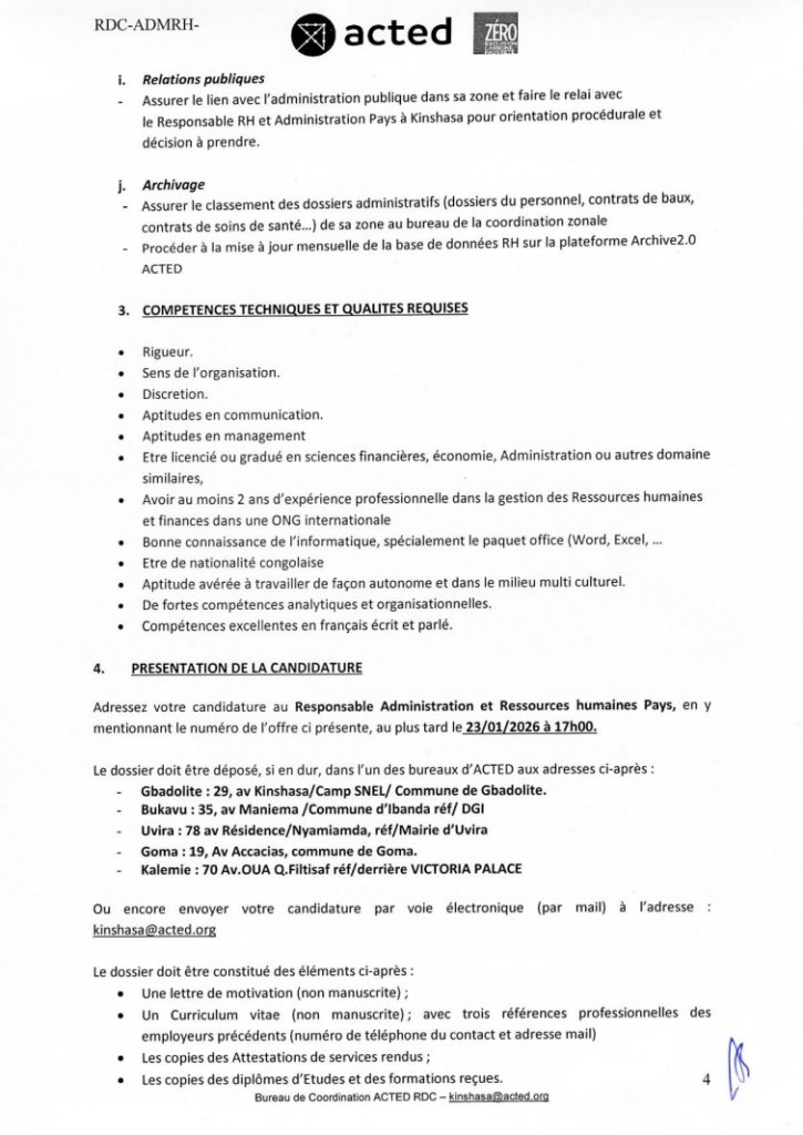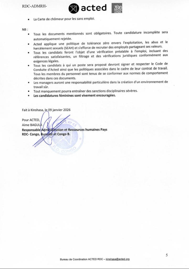 Tout fournisseur intéressé doit retirer le dossier de consultation de l’appel à manifestation d’intérêt à partir du 27/12/2025 et pourra déposer son offre jusqu’au 16/01/2026 à 16h00, heure de Kinshasa
