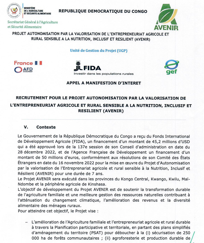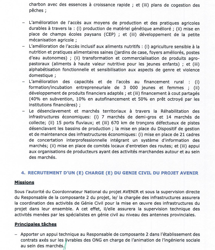 | l’adresse email pour postuler | sgagrirdc@gmail.com recrutement@avenir.cd |