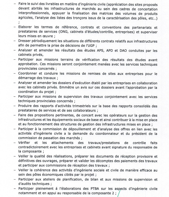 | Intitulé du poste | CHARGE(E) DU GENIE CIVIL | |