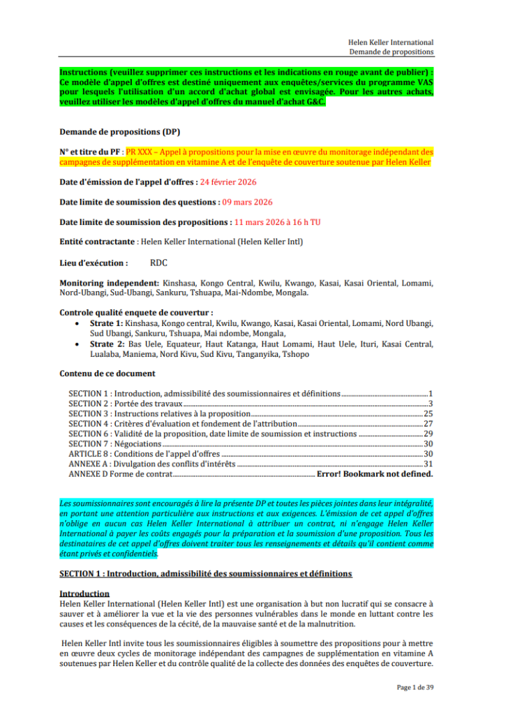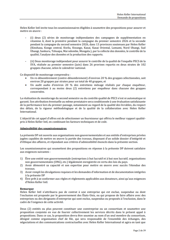 | Adresse email pour soumissionner | VASProcurement@hki.org |