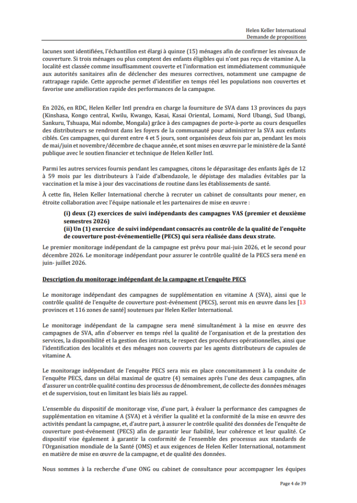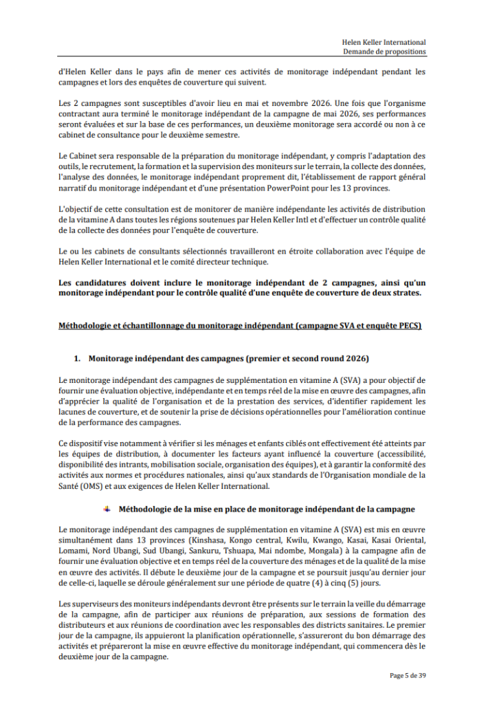 NUMERO DE REFERENCE : -| Intitulé de l’Offre | Propositions pour la mise en œuvre du monitorage indépendant des campagnes de supplémentation en vitamine A et de l’enquête de couverture |