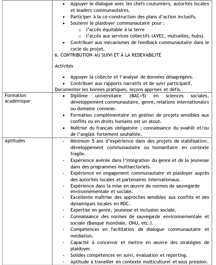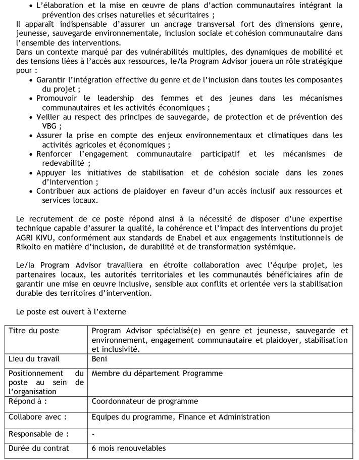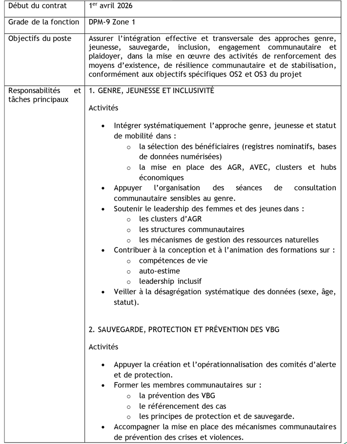 | Intitulé du poste | PROGRAM ADVISOR EN CHARGE DE GENRE | |