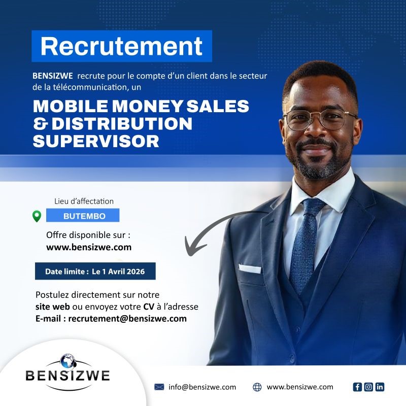 | Intitulé du poste | MOBILE MONEY SALES & DISTRIBUTION SUPERVISOR | |