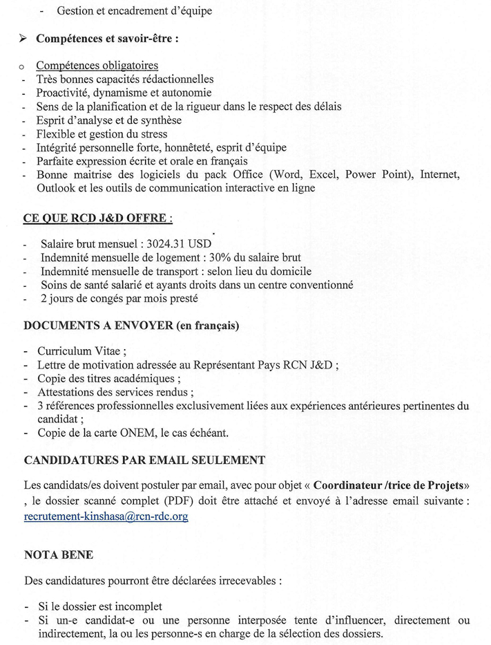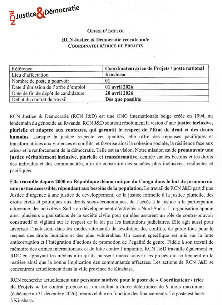 | Lieu d’affectation | Kinshasa ou Goma |