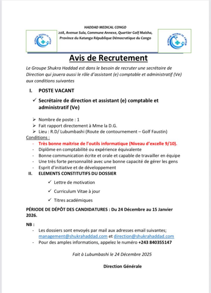 | Adresse email soumissionner | management@shukrahaddad.com et direction@shukraddad.com |