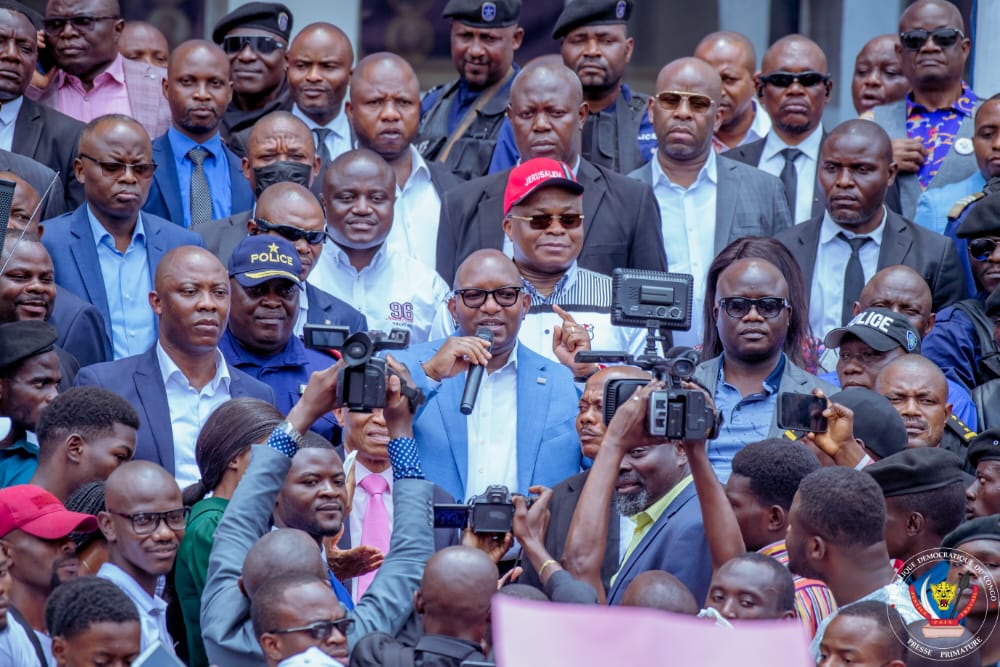 « Aujourd’hui, je suis très heureux de me retrouver avec vous. Et je prends toujours le temps de m’arrêter pour échanger. Depuis que je suis arrivé, pendant que j’étais déjà dans le bâtiment, j’ai entendu les messages que vous m’avez lancés. Le premier message était de demander que nous ne puissions plus avoir de grève ici à l’UNIKIN. Et je crois que vous avez vu, parce qu’au niveau de notre gouvernement, nous avons une tradition de dialogue. Nous échangeons toujours et nous avons reçu le corps des professeurs pour échanger avec eux et trouver la solution. Croyez certainement que je ne serais pas venu ici, si jamais nous n’avions pas de solution en vue. Je peux vous garantir qu’ensemble avec le corps professoral, tout va se faire. Le deuxième point que vous avez mentionné, vous avez dit très exactement ceci : Nous sommes fatigués d’être des locataires. Nous avons besoin de rentrer dans les homes qui nous sont destinés. Tout à l’heure, je vais effectuer les visites. Justement c’est même pour ça que je suis là. Parce que, rappelez-vous que c’est ça qu’il faut retenir : Nous venons de 1954, dans cette Université et heureusement, plusieurs années après, nous avons la chance d’avoir un Président de la République, qui est soucieux du bien-être des étudiants de la République démocratique du Congo, son Excellence Félix-Antoine Tshisekedi Tshilombo. Et c’est lui qui a eu cette volonté de voir ici les homes réhabilités. Donc, c’est important que vous sachiez que c’est un souci qu’il porte pour la République et ici nous allons nous assurer que ces homes soient réhabilités pour vous. Il n’y aura personne d’autre qui va s’en approprier si ce n’est les étudiants. Trans-academia s’est déjà matérialisé. Nous avons fait cette inauguration et donc aujourd’hui ce que nous allons faire pour être très pratique c’est ceci : lorsque nous avons institué Trans-academia, le discours qui nous avait été fait par les étudiants, était de dire ceci : ce qui est fait sans les étudiants est contre les étudiants. Et donc c’est important que vous puissiez faire partie de la gestion. D’ici la fin de la semaine, je serai heureux d’accueillir votre organisation pour la formation de ce comité qui va gérer avec nous ce projet de Trans-academia. Et à ce moment-là, ils vous rendront compte. C’est une promesse du Chef de l’État. Nous, en tant que Gouvernement, on doit s’assurer que ça puisse se matérialiser et ça va se faire », adresse du premier ministre aux étudiants de l’UNIKIN.