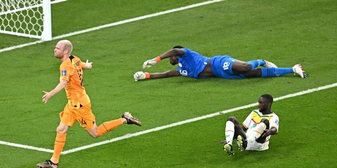 Le Sénégal paraît alors en contrôle mais c’est sans compter sur les contre-attaques de leurs adversaires. Dumfries déboule côté droit et adresse une ouverture de génie pour Berghuis. Ce dernier sert De Jong qui cafouille alors qu’il était idéalement placé (19e). Les débats s’équilibrent ensuite jusqu’à la mi-temps.