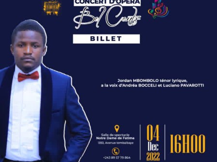 Andrea Bocceli s’est réincarné dans le corps de Jordan Mbombolo, le soir de ce dimanche 04 décembre, dans un concert livré par cet artiste lyrique, à la salle de spectacle Notre Dame de Fatima, situé dans la commune de Gombe, à Kinshasa.