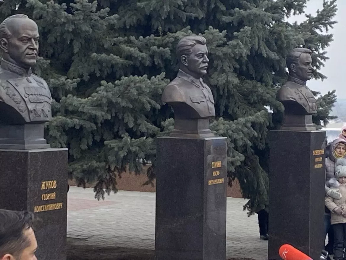 Ce mercredi, sur le parvis, au pied des blindés et avions d’époque, le long des rives d’une Volga blanchie par le gel, ils étaient plusieurs centaines à la mi-journée. Une poignée de vétérans, leurs familles, un mouvement de jeunesse patriotique. On inaugurait trois bustes : ceux de deux chefs militaires célèbres pour leur rôle dans la bataille mythique, Gueorgui Joukov et Alexandre Vassilievski, mais également celui de Joseph Staline.