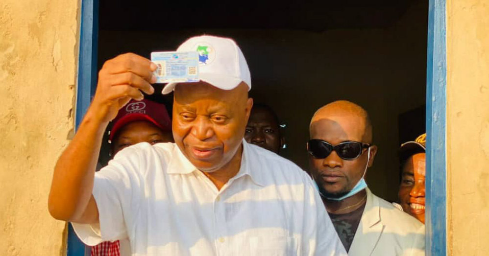 Adolphe Muzito brandit sa carte d’électeur après son enregistrement sur la liste électorale @Photo Droits tiers