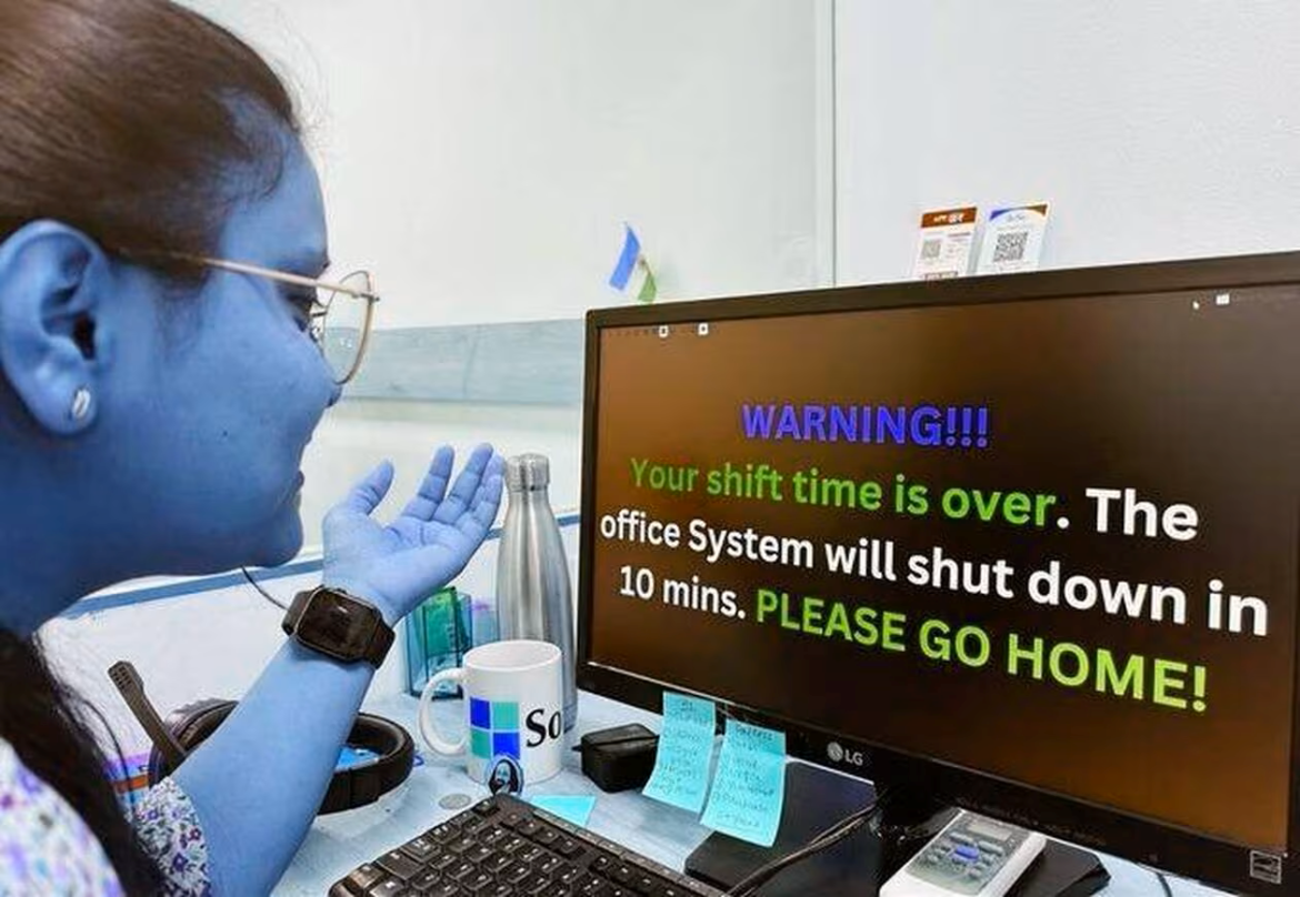 « Avertissement !!! Votre temps de travail est terminé. Le système informatique s’éteindra dans 10 minutes. VEUILLEZ RENTRER CHEZ VOUS ! » Imaginez, vous êtes au bureau et votre ordinateur affiche soudain ce message en grosses lettres sur fond noir. Que feriez-vous ? Pour les employés de la société indienne SoftGrid Computers, le message est clair : il sonne la fin de la journée de travail et les invite à quitter leur poste sans tarder.