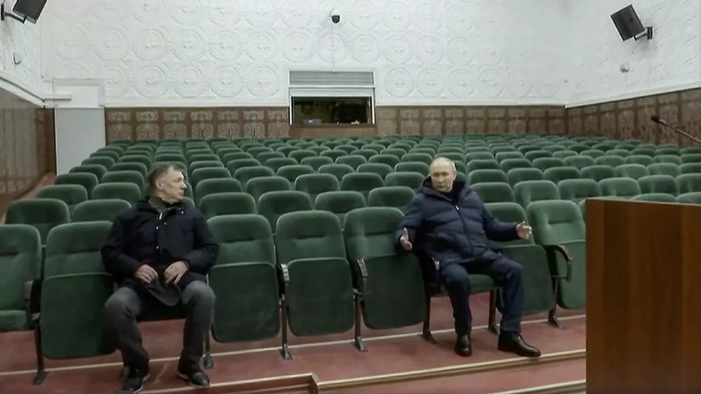Le bâtiment qu’il a visité, bien sûr, tout le monde le connaît : c’est celui de l’Orchestre Philarmonique de Marioupol… je pense qu’il est allé parce que c’est l’un des seuls bâtiments publics qui a été réparé depuis que les Russes ont bombardé la ville… Il n’y a pas beaucoup d’endroits comme ça à Marioupol – des bâtiments restaurés qu’il pouvait visiter – et qui pouvaient être montrés par les caméras de la propagande russe ».