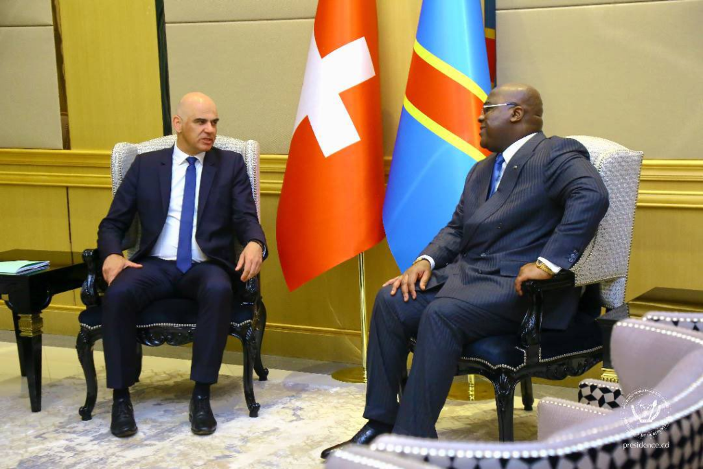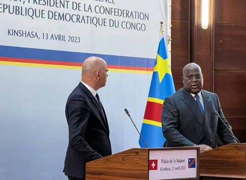 Le Chef de l’État, Félix Antoine Tshisekedi Tshilombo s’entretient, en tête-à-tête, dans son bureau du Palais de la Nation, avec son Homologue Suisse, Alain Berset. pic.twitter.com/zMKOrh0lBi— Présidence RDC 🇨🇩 (@Presidence_RDC) April 13, 2023