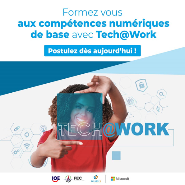 Le Centre Synapse, en partenariat avec Microsoft, l’Organisation Internationale des Employeurs (OIE) et la Fédération des Entreprises du Congo (FEC), accepte désormais les candidatures pour le programme de formation Tech@Work en RD Congo.