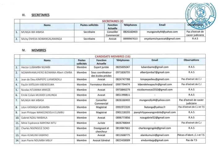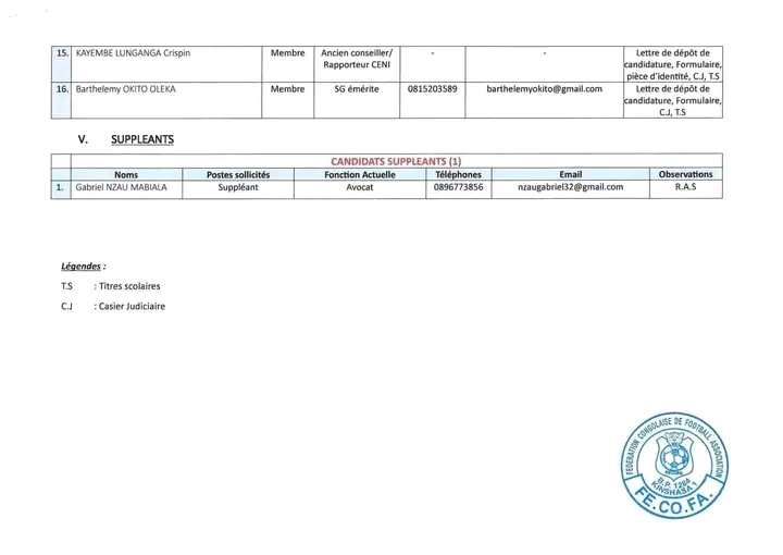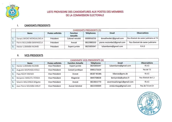 En effet, le Comité de Normalisation de la FECOFA a rendu public la liste des candidats aux élections de la Commission Électorale et de la Commission de recours de la FECOFA.
