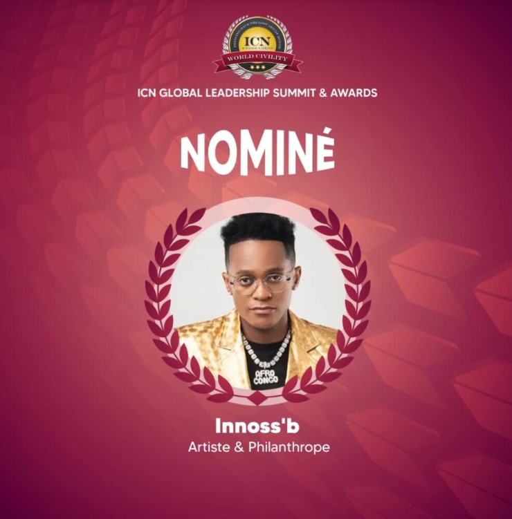 Pour cette deuxième édition, la superstar et philantrope congolais Innoss’B figure parmi les personnalités de classe mondiale nominés pour la cérémonie de remise des Prix qui se déroulera lors du Sommet ICN Global Leadership Summit & Awards dont la première femme Présidente de la République d’Équateur et ancienne candidate Secrétaire Général des Nations-Unies, Dr. Rosalía Arteaga, sous le haut parrainage du Ministre congolais de l’Aménagement du Territoire, Guy Loando Mboyo.