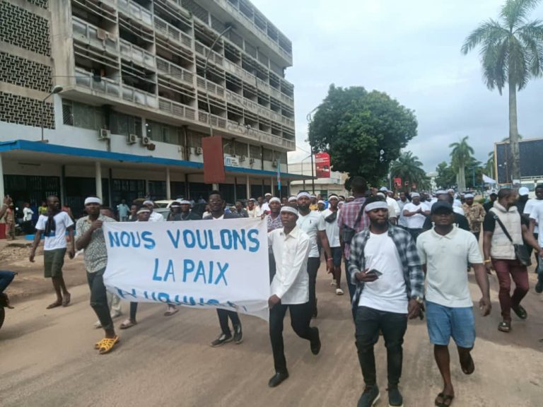 Les manifestants, composés d’acteurs de la société civile, d’acteurs politiques et d’autres jeunes, ont parcouru plusieurs artères du centre-ville de Kisangani avant de se rendre au gouvernorat. Ils portaient des bandes blanches sur la tête, en signe de paix, et des pancartes sur lesquelles on pouvait lire « Nous voulons la paix à Lubunga » et « Annulation des contrats de la société CAP CONGO ». Ils ont également brandi des photos du carnage et scandé des chansons pour demander la paix.