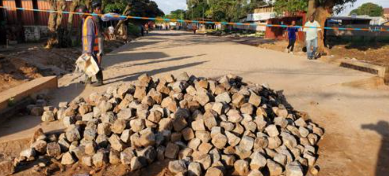 Ces pierres artisanales taillées au niveau des carrières situées au pied des montagnes surplombant la ville sont actuellement utilisées dans le revêtement de la « route mwami », une route secondaire qui est en pleine réhabilitation.