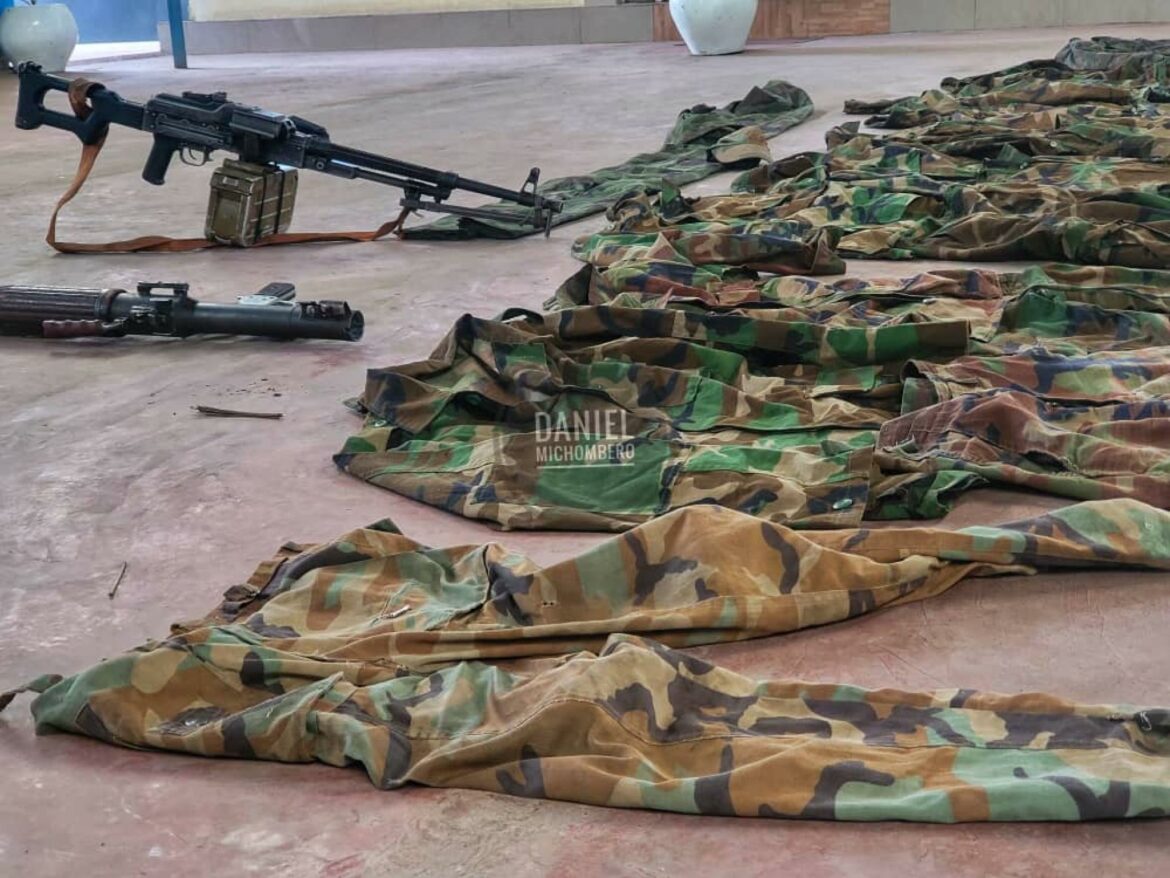 En effet, il s’agit des armes et des tenues militaires récupérées sur les corps des éléments RDF -Rwandan Defense Forces-, après les combats de vendredi et ce samedi à Karenga, une localité située non loin de l’agglomération de Kilolirwe, dans la chefferie des Bashali.