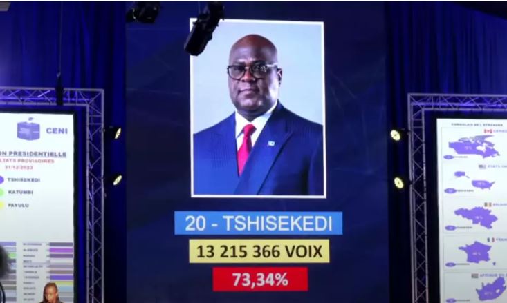 Félix Tshisekedi a été déclaré président de la République démocratique du Congo (RDC) pour un deuxième mandat. Le résultat provisoire a été publié dans l’après-midi de ce dimanche 31 décembre. Celui qui briguait un second mandat l’a emporté largement avec 73,34%. Sur 41 700 millions d’électeurs attendus, 18 millions ont réellement pris part au vote, soit 43,23% de taux de participation, selon la Céni.