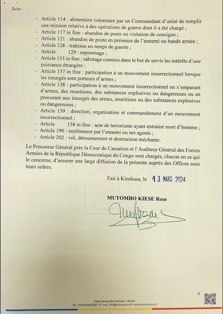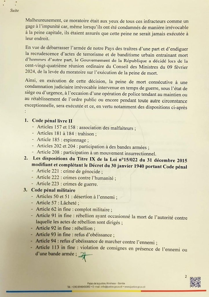 Dans ses courriers parvenus à Netic-News, le Ministère de la Justice, annonce la levée de l’exécution de la peine de mort en République Démocratique du Congo (RDC).