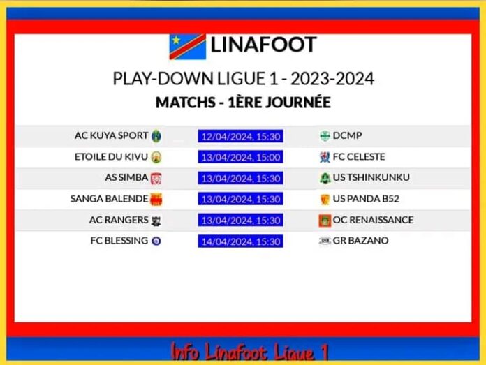 Le début de la phase de Play-down du championnat de la Ligue Nationale de Football (LINAFOOT) ligue 1, édition 2023-2024, initialement prévu ce samedi 14 avril 2024, a été reporté à une date ultérieure.