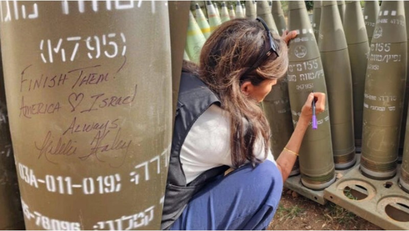 L’ancienne candidate républicaine à la présidence des États-Unis Nikki Haley a inscrit les mots « Achevez-les » sur un obus israélien lors d’une visite dans le nord d’Israël, près de la frontière libanaise, selon une photo publiée mardi sur X par le député israélien Danny Danon.