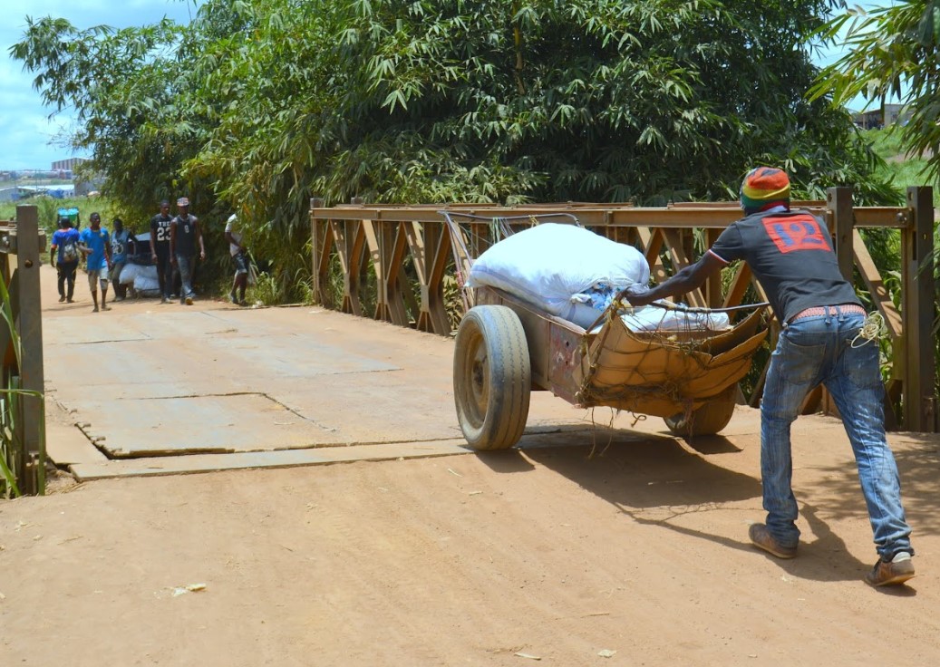 Un charretier en provenance de l’Angola s’apprête à traverser un pont pour se rendre au marché de Lufu dans le territoire de Songololo, province du Kongo central le 11/06/2016. Radio Okapi/Ph. John Bompengo.