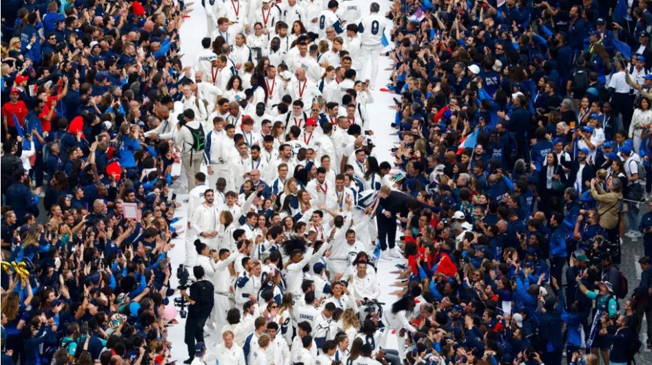 « Tony, Tony ! », a scandé la foule alors que défilait le président du comité d’organisation des JO et triple champion olympique Tony Estanguet. Un même tonnerre d’applaudissements a accompagné les passages du directeur artistique des cérémonies des Jeux, Thomas Jolly, ou de Marie-José Pérec, triple championne olympique en 1992 et 1996 et qui a allumé la vasque olympique de ces JO 2024.