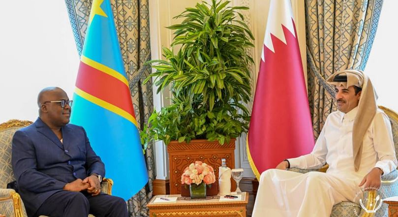 « Ce dimanche au palais Diwan Amiri de Doha, le Président Félix Tshisekedi s’est entretenu avec l’Émir du Qatar, Son Altesse Cheikh Tamin Bin Hamad Al-Thani, sur le renforcement de la coopération bilatérale entre leurs États, notamment les opportunités d’investissements en RDC. Les deux dirigeants ont également abordé la question de la paix et de la stabilité dans le monde », a-t-on lu sur le compte X de la Présidence.