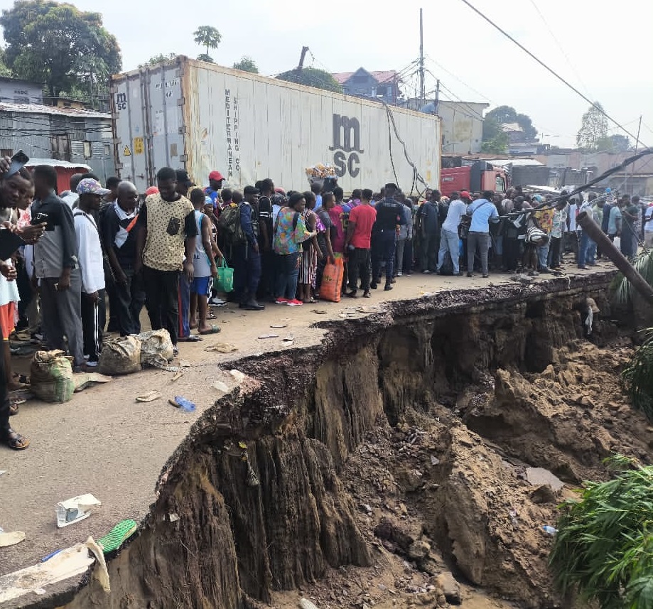 Les eaux de pluie ont gravement endommagé les infrastructures urbaines. Une érosion impressionnante de plus de dix mètres de profondeur s’est creusée sur la route Bypass, perturbant gravement la circulation. Plusieurs artères principales, dont l’avenue du Tourisme à Ngaliema, ont été partiellement détruites ou rendues impraticables.