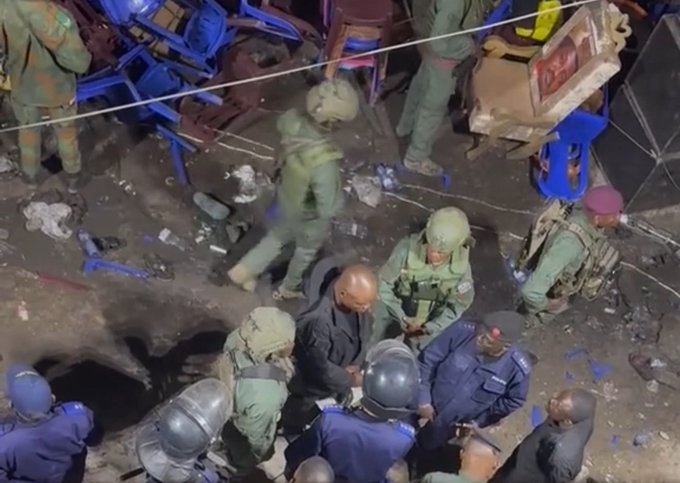 Des images circulant sur les réseaux sociaux montrent des chaises en plastique cassées et jetées en vrac, témoignant de la brutalité de l’intervention qui a créé un mouvement de panique parmi les manifestants.