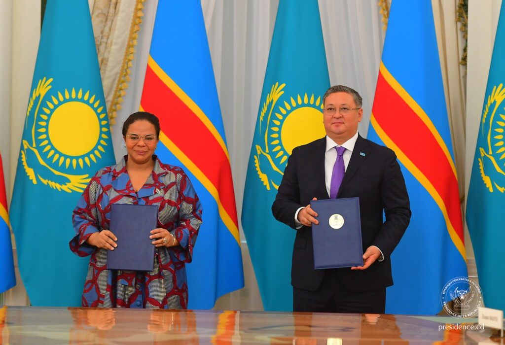 Le deuxième accord de coopération dans les domaines des mines et de géologie a été signé par le ministre des mines Louis Watum et Yersayin Nagaspaev , ministre de l’industrie et de la construction de la République du Kazakhstan.