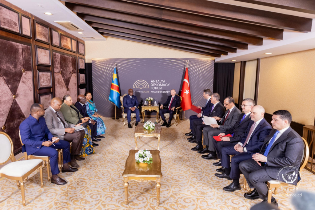 En marge du 5e Forum diplomatique d’Antalya, le Président de la République démocratique du Congo, Félix Tshisekedi, et son homologue de la Türkiye, Recep Tayyip Erdoğan, ont tenu une réunion bilatérale axée sur le renforcement du partenariat stratégique entre leurs deux pays.