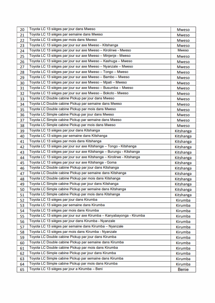 | Intitulé de l’Offre | LOCATION DE VEHICULES TYPE LAND CRUISER AVEC CHAUFFEUR |