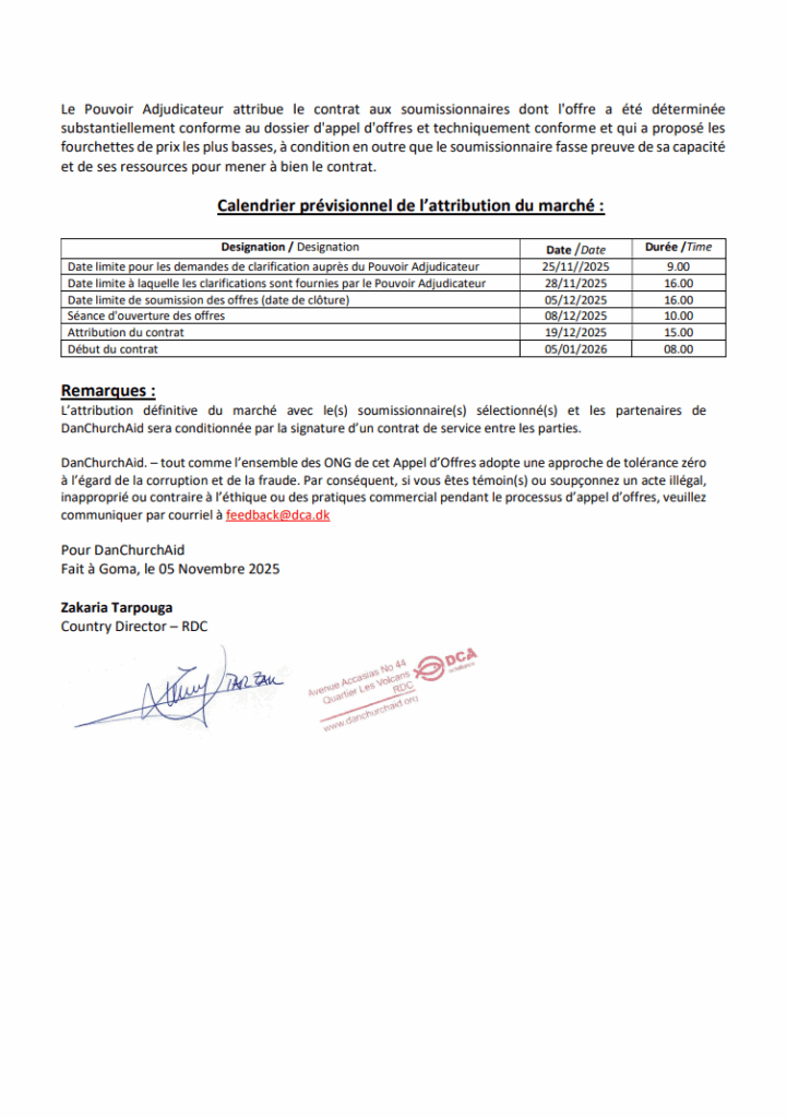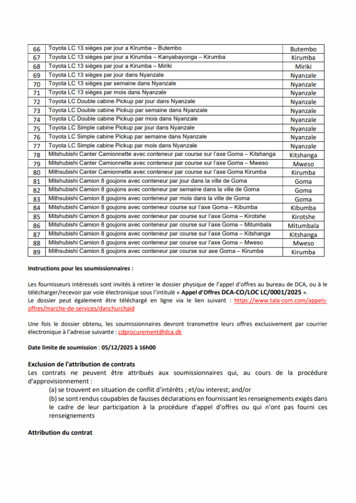 | Références | DCA-CO/LOC LC/0001/2025 |