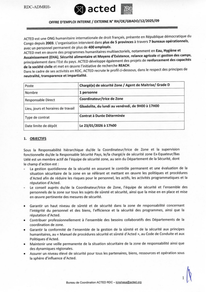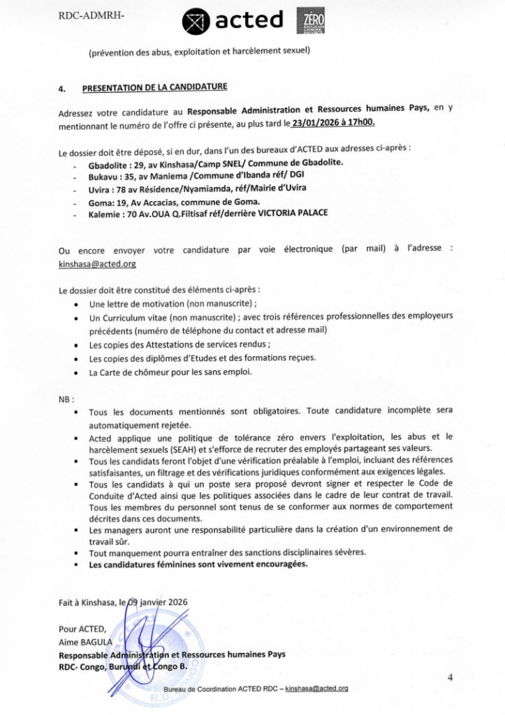 | Adresse email soumissionner | kinshasa@acted.org |