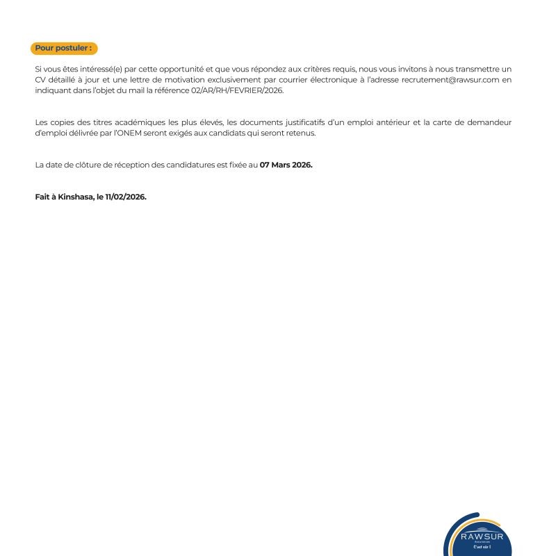 | l’adresse email pour postuler | recrutement@rawsur.com |