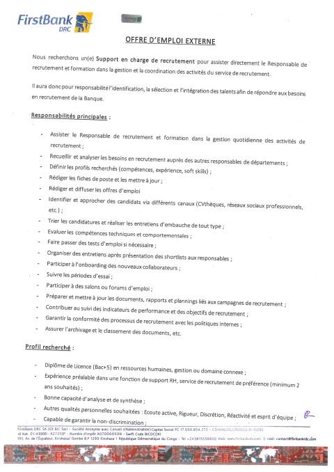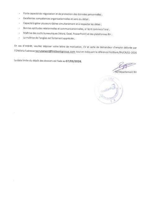 | l’adresse email pour postuler | recrutement@firstbankgroup.com |