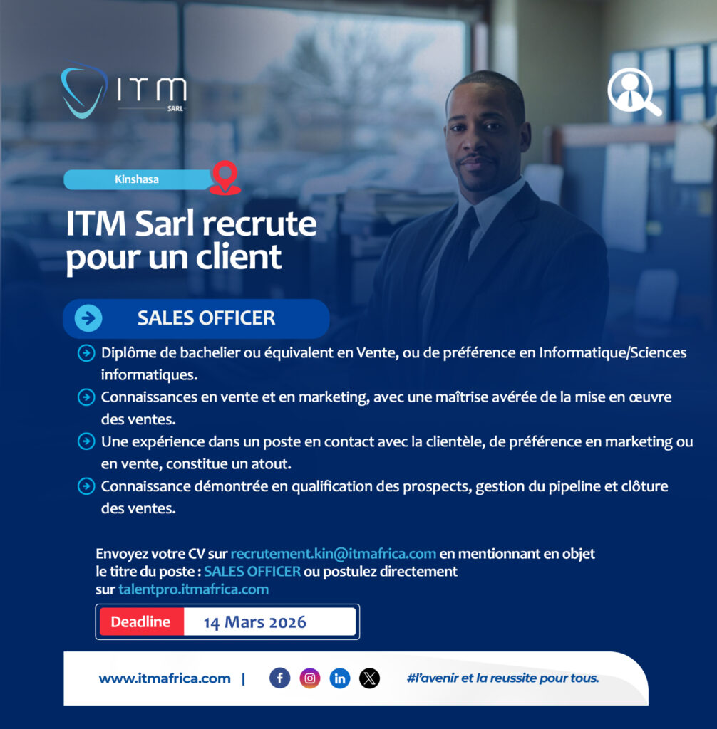 | l’adresse email pour postuler | Recrutement.kin@itmafrica.com |