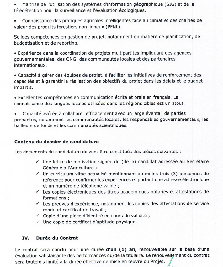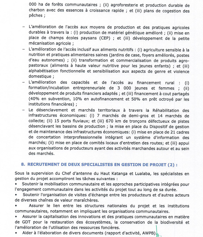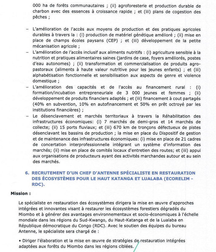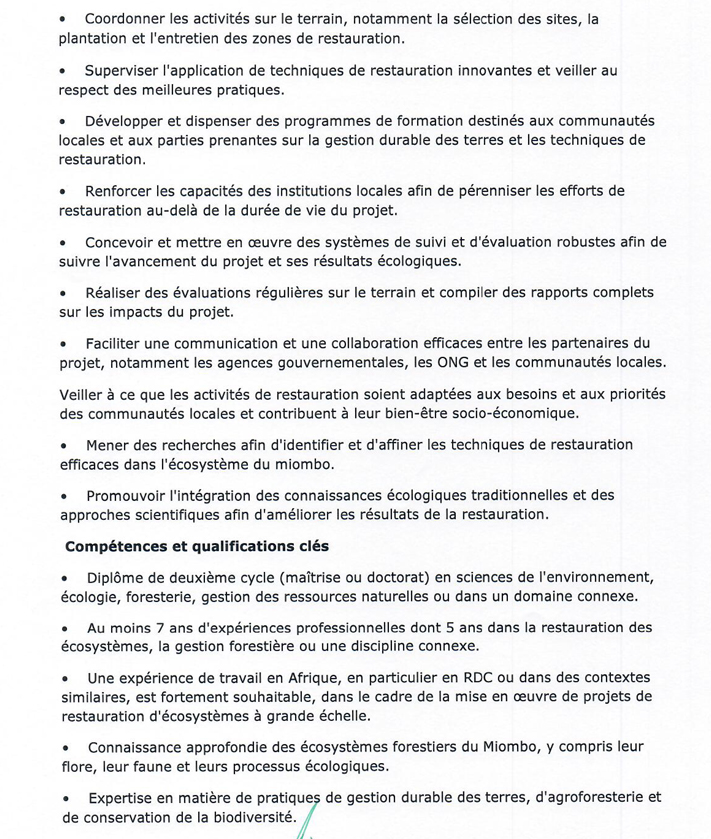 | Intitulé du poste | CHEF D’ANTENNE SPECIALISTE EN RESTAURATION DES ECOSYSTEMES POUR LE HAUT KATANGA ET LUALABA | |
