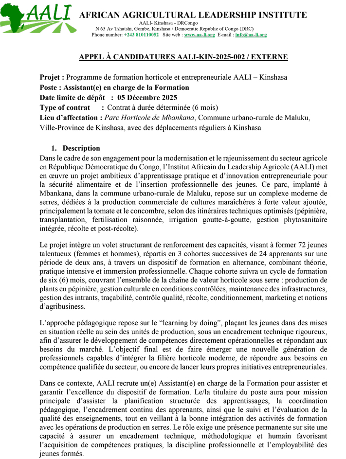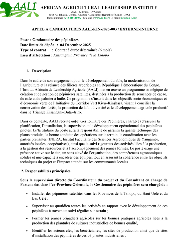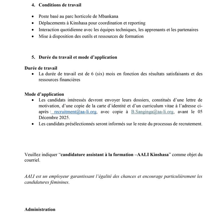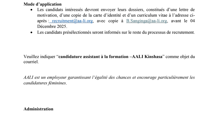 | l’adresse email pour postuler | recruitment@aa-li.org b.sanginga@aa-li.org |