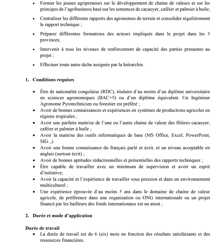 - Prior experience in Eastern DRC strongly preferred, or elsewhere in other countries, an advantage.