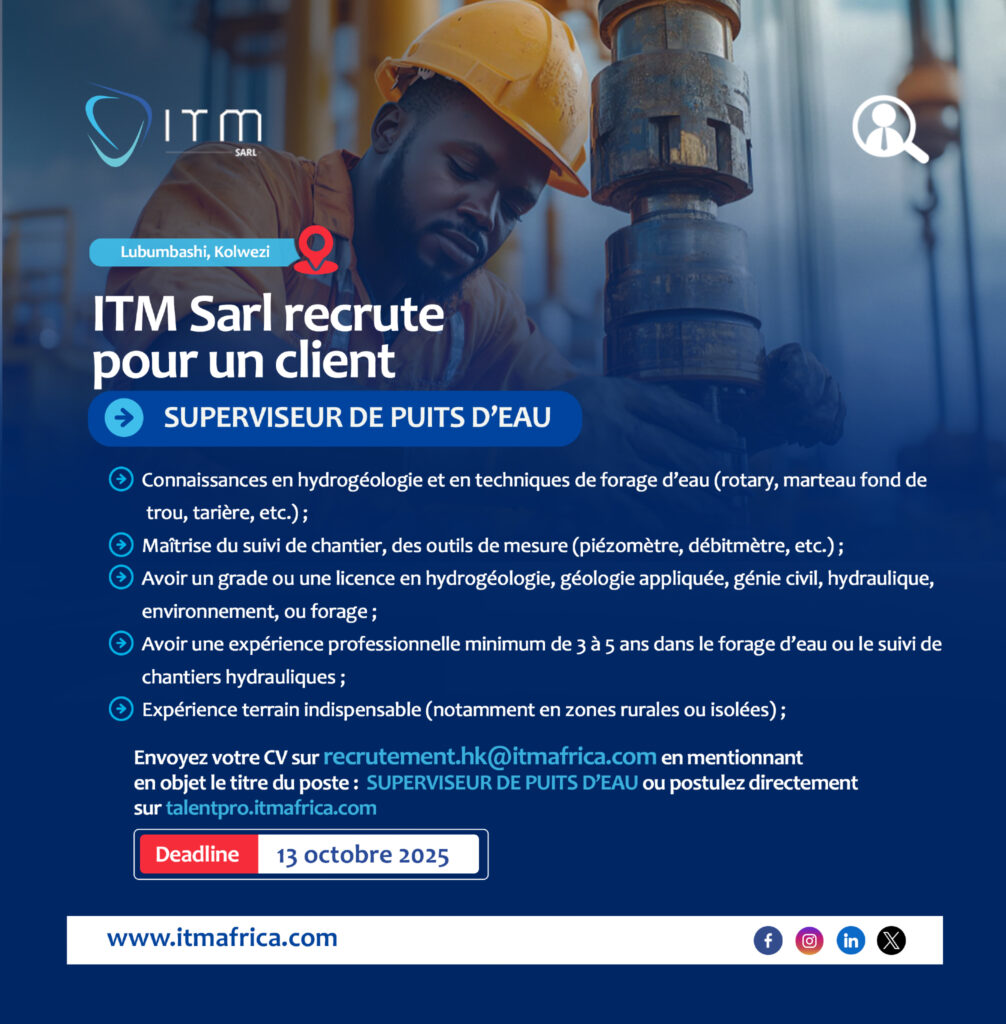 Intitulé du poste | SUPERVISEUR DE PUITS D’EAU | |