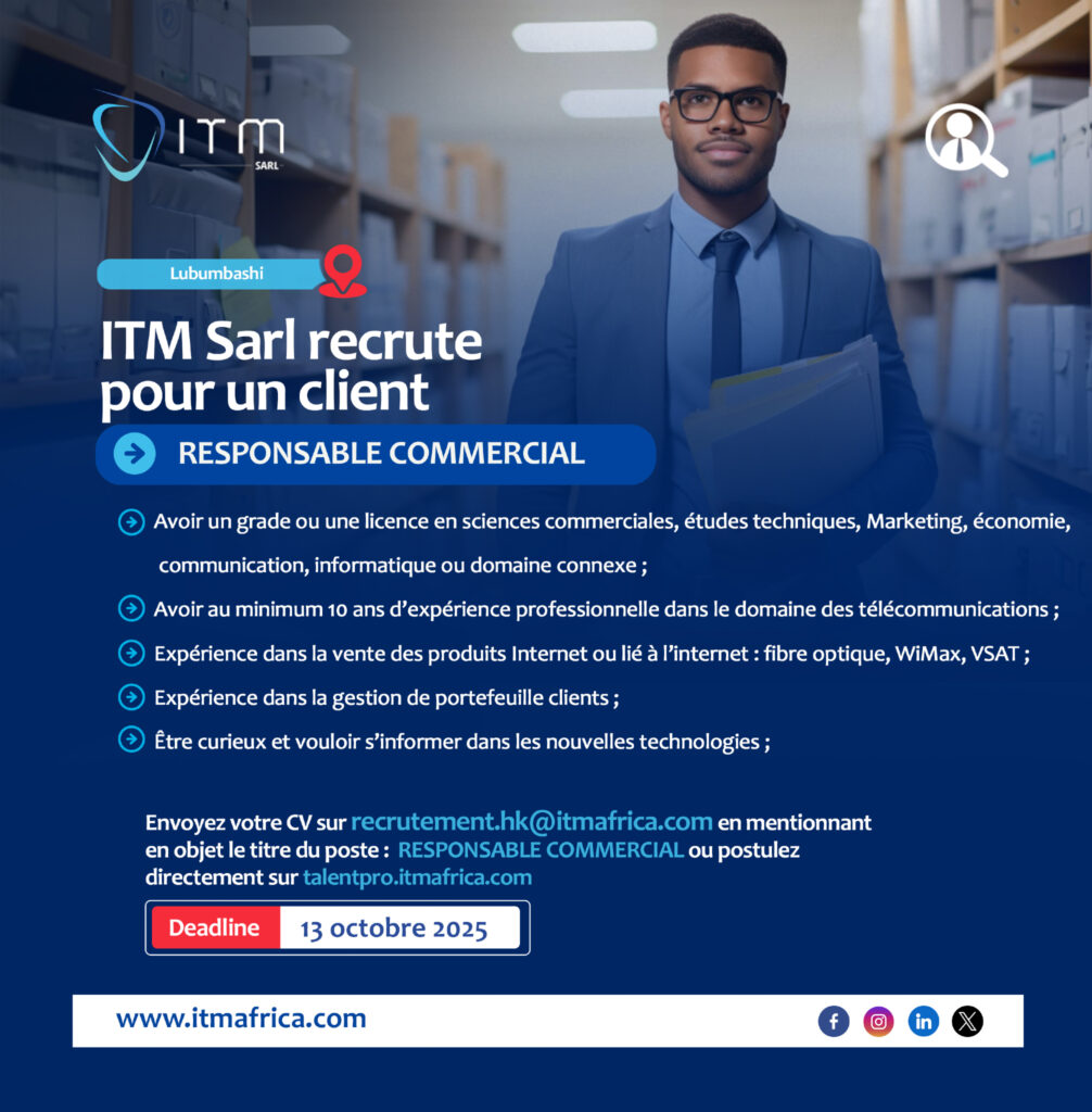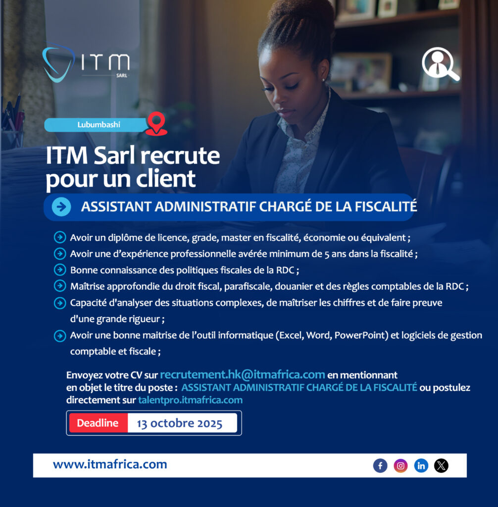 l’adresse email pour postuler | Recrutement.hk@itmafrica.com |