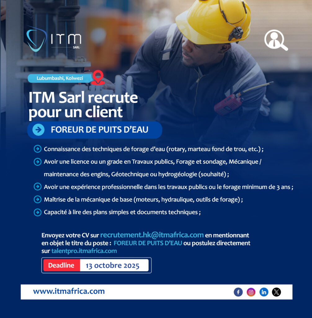 Intitulé du poste | FOREUR DE PUITS D’EAU | |