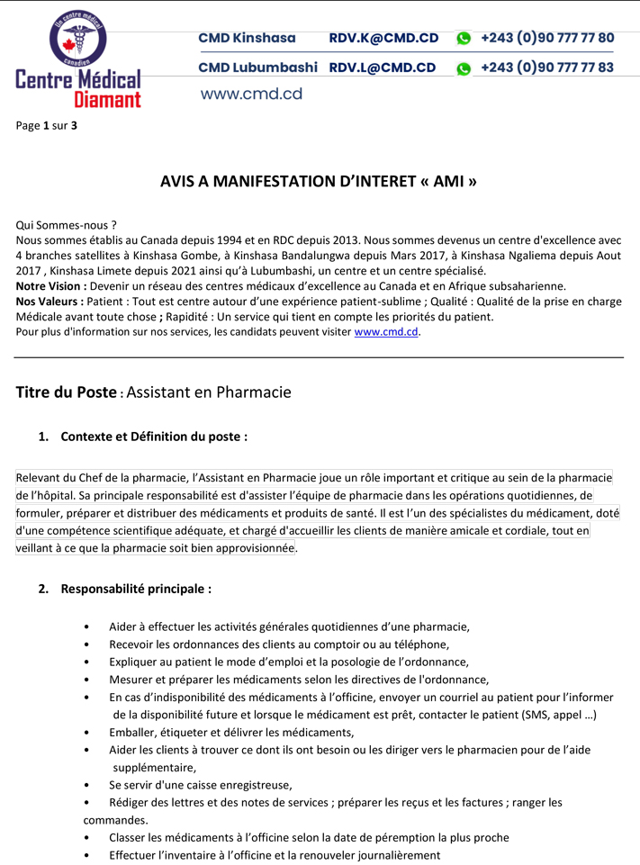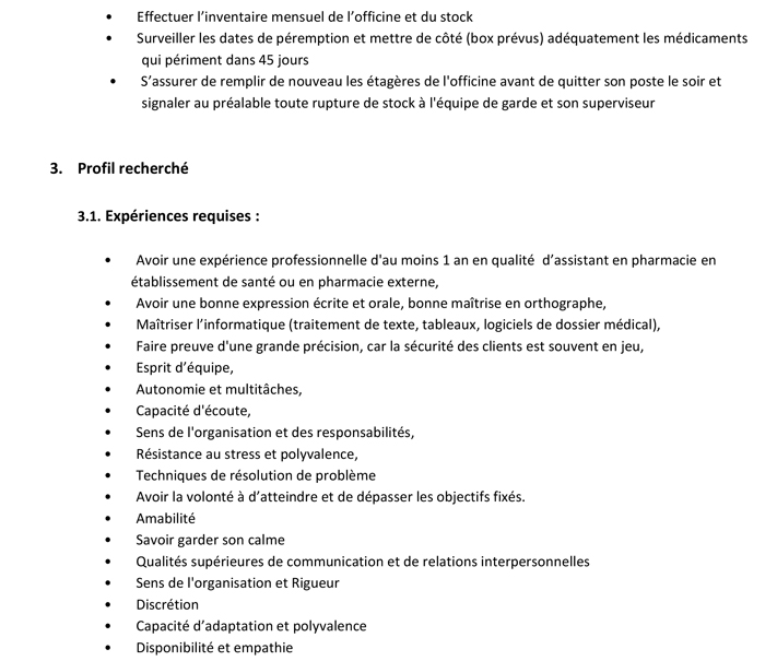 Intitulé du poste | ASSISTANT EN PHARMACIE | |