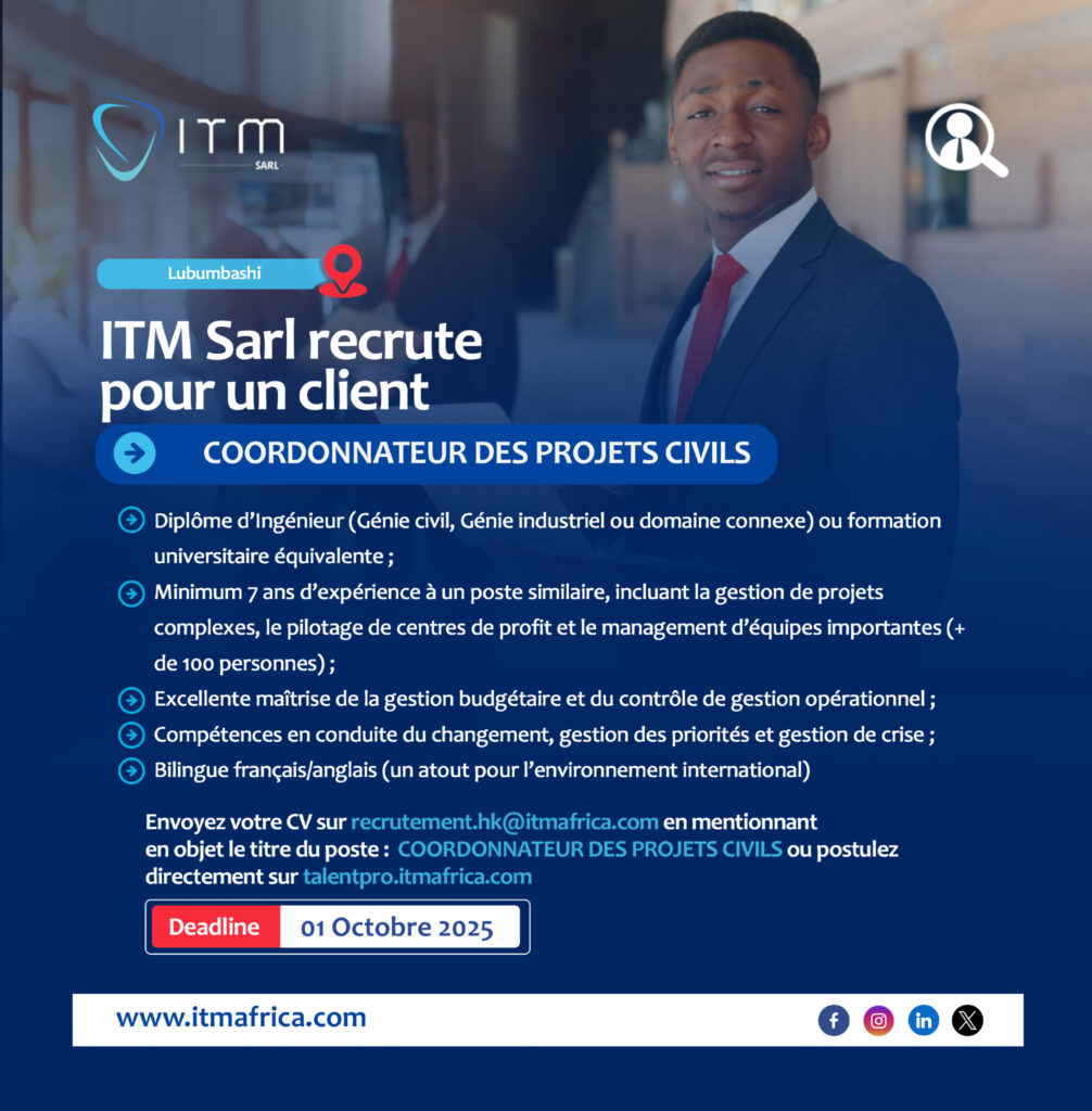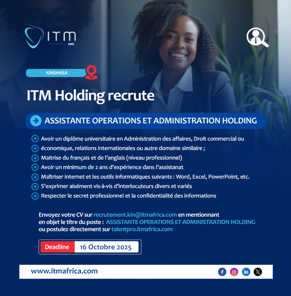 l’adresse email pour postuler | Recrutement.kin@itmafrica.com | |