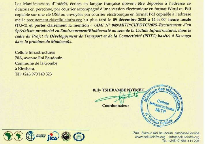 | l’adresse email pour postuler | Recrutement.ci@celluleinfra.org |